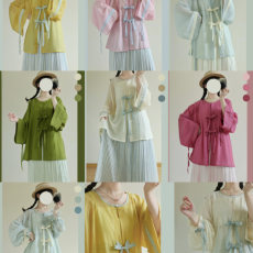 梦屿盛明制汉服天丝圆领衫对襟抽绳开衫女装春夏款日常通勤汉元素