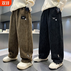 男童休闲裤春秋2025新款儿童大童男孩初中生直筒宽松长裤秋冬加绒