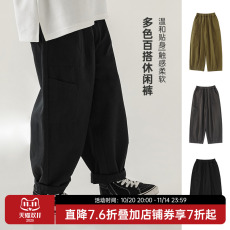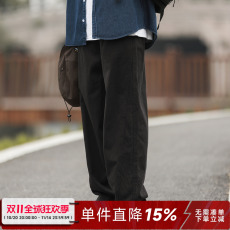 240g嘿马七作日系春秋款男士分割拼接宽松休闲裤工装直筒长裤潮牌