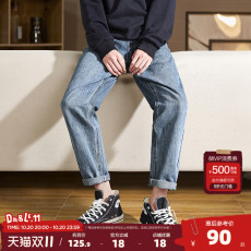依妈男童一粒扣复古砂洗牛仔裤儿童春装休闲裤宝宝宽松直筒裤子