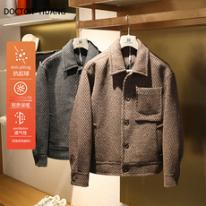双面呢夹克男秋冬季短款韩版时尚外套翻领休闲宽松高端青年大衣潮