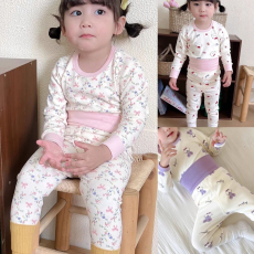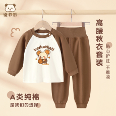 女童高腰护肚家居服男宝宝秋衣秋裤纯棉内衣套装加厚无骨款儿童