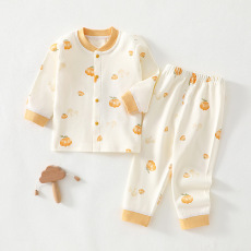 春秋款纯棉宝宝开衫两用裆秋衣秋裤套装男童女童宝宝睡衣内衣a类