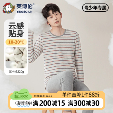 猫人男大童秋衣秋裤纯棉儿童内衣套装男孩青少年打底睡衣新款全棉