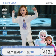 爱慕儿童艾莎冰雪奇缘IP棉莫保暖套装男女童印花秋衣秋裤套装秋冬