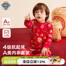 汪汪队男童秋衣秋裤秋冬款A类纯棉儿童红色保暖内衣套装宝宝睡衣