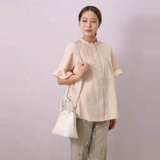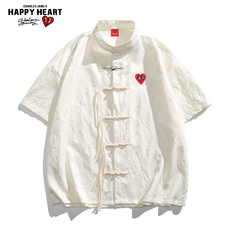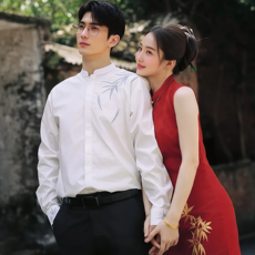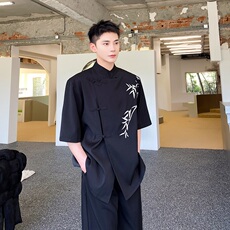 夏季改良中式盘扣竹子刺绣立领短袖男女衬衣复古中国风衬衫发型师