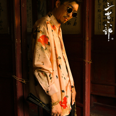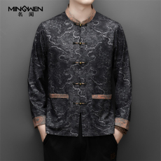 印花立领唐装男春秋季薄款高级感中国风复古装新中式国潮衬衫外套