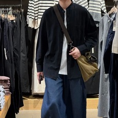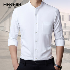 纯棉男士圆领长袖衬衫春季休闲打底百搭宽松立领牛津纺衬衣寸潮流
