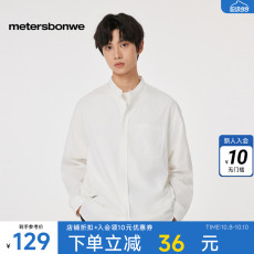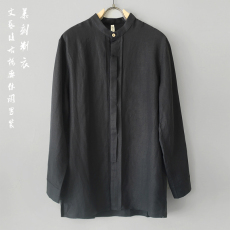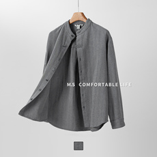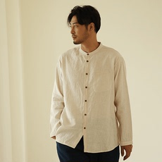 汉絮轻柔透气长袖亚麻衬衫男士文艺休闲宽松上衣薄款立领麻料衬衣