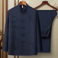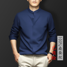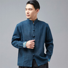 中式唐装男中国风春秋季男装改良汉服长袖衬衫复古立领青年茶禅服