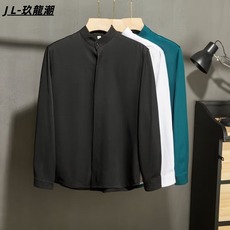 新中式立领衬衫男长袖春秋季中国风男装2025新款高级感中山领衬衣