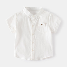 UCNOO与虫男女童短袖白衬衫2025夏季新款亚麻竹节棉休闲立领衬衣