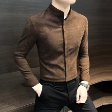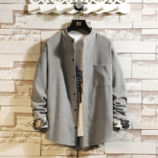 春夏新款男士休闲亚麻立领衬衫中式复古青年潮流纯色薄款衬衣