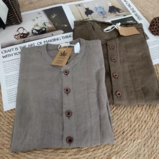 原创立领衬衣:100汉麻原单正版木质扣立领衬衣外套男女同款