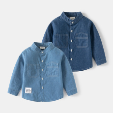 男童牛仔衬衫春秋儿童2024新款韩版洋气男孩立领春装衬衣长袖外套