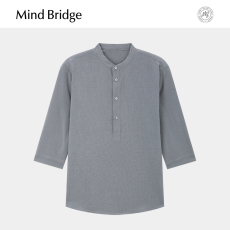 Mind Bridge2025年秋季五分袖通勤小立领衬衫男士新款休闲衬衣