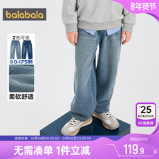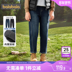 巴拉巴拉男童牛仔裤中大童宝宝加绒裤子秋冬季新款儿童休闲长裤厚