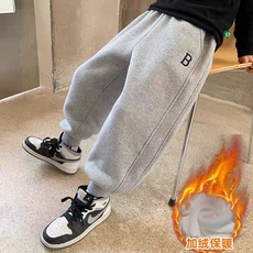 男童保暖一体绒卫裤中大童加绒裤子收口运动裤儿童休闲百搭厚长裤