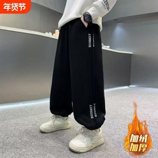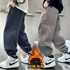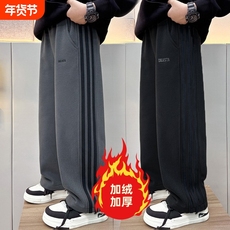 男童直筒裤子秋冬加绒潮2025中大童长裤宽松儿童休闲卫裤冬季加厚