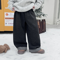 DK童装秋冬款女男童宽松加绒保暖运动裤中大童儿童阔腿休闲长裤子