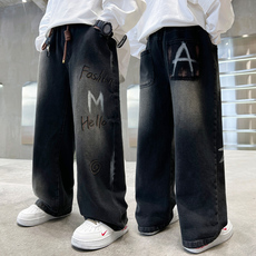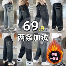 男童秋冬牛仔裤儿童中大童宽松直筒休闲裤男孩冬季加绒炸街长裤子