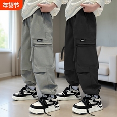 男童春装裤子2025新款儿童休闲长裤中大童春秋季加绒款工装潮外穿
