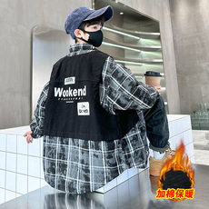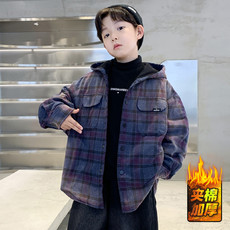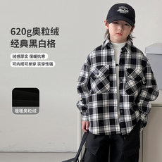 男童加绒外套2024冬装新款自制中大童加厚上衣韩版格子儿童衬衫潮