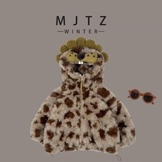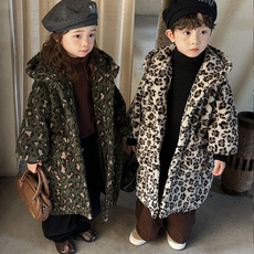 儿童秋冬装男童加绒加厚豹纹大衣男女宝宝韩系复古连帽外套兄妹装