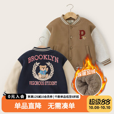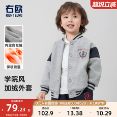 右欧童装男童女童加绒棒球服外套秋冬装美式学院儿童宝宝加厚上衣