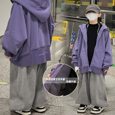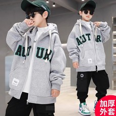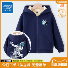 男童冬装加绒卫衣外套2024新款中大儿童冬季一体绒上衣加厚秋冬款