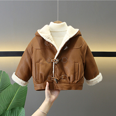宝宝冬季加绒加厚外套洋气时髦男童秋冬装保暖上衣婴儿童毛毛衣潮