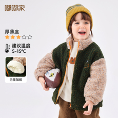 巴布豆儿童加绒外套2025新款中大童摇粒绒夹克加厚保暖男童秋冬装