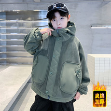男童秋冬装加绒外套2025新款秋装加厚中大童儿童冲锋衣秋冬款3-15