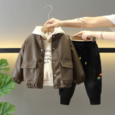 男童冬季套装2025新款儿童加绒加厚冬装三件套宝宝酷帅皮衣外套潮