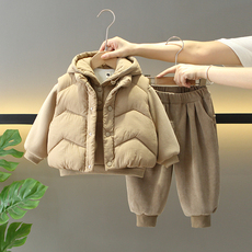 男童装冬季加绒套装2025新款儿童加厚棉马甲宝宝韩版冬装三件套潮