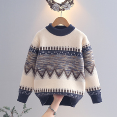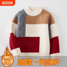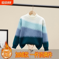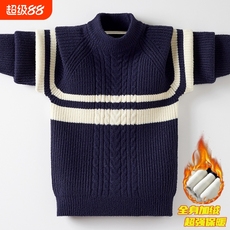 男童毛衣套头秋冬款中大童加绒加厚儿童针织打底衫棉保暖男孩冬季
