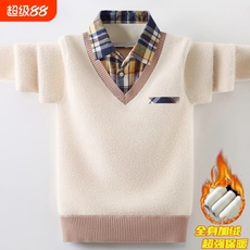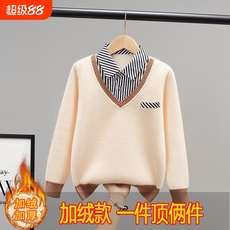男童毛衣假两件新款儿童中大童针织衫秋冬男孩加绒打底衫外穿洋气