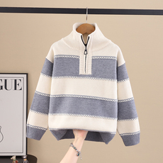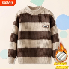 2025年秋冬男童斑马纹毛衣经典撞色洋气时髦中大童休闲加绒针织衫