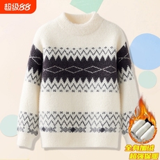 男童毛衣水貂绒冬装2024新款中大童韩版加厚儿童洋气圆领针织衫