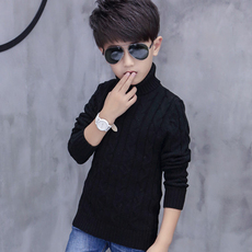 男童毛衣水貂绒秋冬加绒加厚儿童针织衫中大童洋气男孩高领打底衫