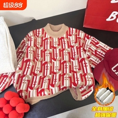 中大童新款毛衣男孩帅气红色针织衫男童秋冬季圆领时髦拜年打底衫