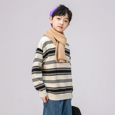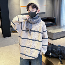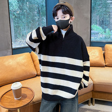 男童秋冬装毛衣中大童冬季翻领条纹长袖针织衫套头上衣宽松毛线衣
