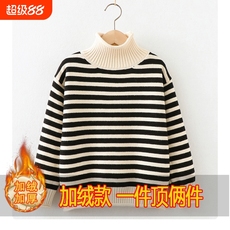 男童2025年秋冬新款加绒加厚针织毛衣中大童2-13岁洋气条纹打底衫