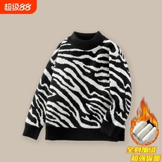 男童秋冬装洋气斑马纹加绒厚毛衣儿童半高领长袖衣服中大童打底衫