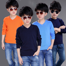 男童薄款毛衣套头纯色中大童打底衫春秋款12岁儿童针织衫领男孩