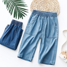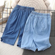 儿童超薄天丝棉牛仔七分裤2023夏季男童休闲潮短裤中大童沙滩中裤