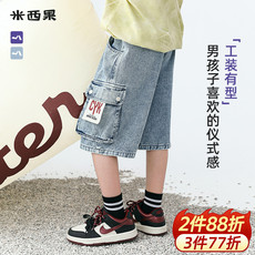 米西果男童牛仔短裤夏季薄款2025新款中裤男孩夏款童装儿童七分裤
