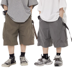 日系潮酷工装七分裤 男童夏季薄款宽松立体大口袋搭扣休闲短裤子