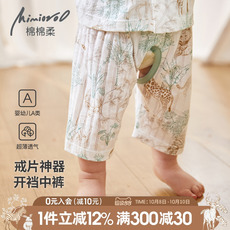 宝宝开裆裤纯棉薄款夏季外穿婴儿裤子儿童七分裤男童叉叉裤短裤